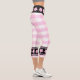 Trendy Cute Girly Pink White Chequered Pattern & Black Waist With Pink Flowers Women's Capri Leggings design.