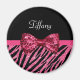 Trendy Pink Zebra Print FAUX Glitz Bow With Name Magnet