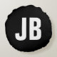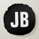 Trendy plain simple bold monogram initials black round cushion