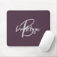 Trendy Plum Purple Grey White Script Monogram Mouse Pad