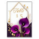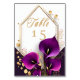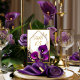 Our table numbers are customisable, allowing you to adjust the number to fit your seating arrangement perfectly. The graceful calligraphy script and the striking contrast between the rich purple and the golden elements make these table numbers a stunning addition to your reception tables.