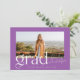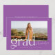 This modern and trendy graduation announcement features a purple and white colour palette and a large photo of your graduate. A bold and stylish "Grad" adorns the front. The back of the card features simple type allowing you to tell more about your graduate and their plan for the future. Or, you can change it to a graduation party invitation. You can find other versions of this design in my Zazzle store.