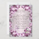 Pretty purple flowers on a purple background. This beautiful wedding invitation is a modern and elegant way to invite family and friends to your wedding. Personalise the card by changing the text in the fields provided front and back. You can change font style, size, and colour, as well as paper type and style.