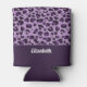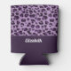 This stylish can cooler features a trendy leopard spots print pattern in shades of purple; easily customisable by adding your name or text on the dark purple band on the lower part