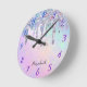 Trendy Rainbow Glitter Drips Holographic Round Clock
