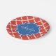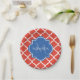 Trendy Red Quatrefoil Blue Monogram and Name Paper Plate