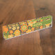 A bold, floral design with colourful shades of gold, orange and green with a fun colour block to add your name or any text. The crazy flower pattern has a variety of colours.