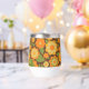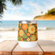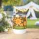 A bold, floral design with colourful shades of gold, orange and green with a fun colour block to add your name or any text. The crazy flower pattern has a variety of colours.