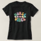 Retro, curved style with trendy sayings Nurse Vibes in multicolored fonts and patterned flowers