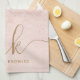 Trendy Rose Gold Glitter Fancy Initials and Name Tea Towel