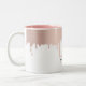 Trendy Rose Pink Gold Metallic Drips Monogram Two-Tone Coffee Mug