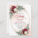 Celebrate a special upcoming arrival with this boho baby shower invitation featuring rich burgundy, deep red, marsala, and maroon watercolor peonies, accented with soft eucalyptus greenery and elegant gold details. This warm, romantic color palette creates a stylish and inviting look, perfect for bohemian, rustic, or modern baby shower themes.