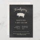 This stylish and simple Friendsgiving invitation for a big Thanksgiving dinner feast with friends features a black chalkboard look background, a farmhouse style pig silhouette, and trendy rustic script. The back of the invitation has a weathered, white wood look.