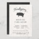 This stylish and simple Friendsgiving invitation for a big Thanksgiving dinner feast with friends features a white weathered wood look background, a farmhouse style pig silhouette, and trendy rustic script. The back of the invitation has a black chalkboard look.