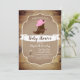Rustic cowgirl boots and pink cowgirl hat design with a wood planks print design background baby shower invitation. Great for an cute girly western themed shower for a mother to be!