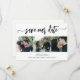 Trendy minimalist elegant black and white modern calligraphy script with swirls wedding save the date card with a 3 photo collage. +++++++++++ Suitable for any season and theme. ++++++++++ Easy to personalise with your pictures and details!