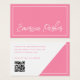 Influencer profile business cards with your name on the front in a trendy handwritten script font. Add your social media handle and website on the back and customize the QR code. Pink and white design. Colors can be customized with the design tool.