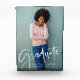 This trendy, elegant graduation keepsake features a photo of the college or high school graduate. Casual, modern white script appears on an overlay along with their photo.