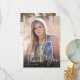 Trendy Script Overlay Photo Thank You Card - Your graduate is featured on our graduation announcement, in full colour, full bleed on the front of the invitation and a second photo on the back of the card with your personal thank you. Card also features, pretty handwritten script style typography.