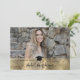 This elementary school/middle school/high school/college/university graduation announcement features a gold header with cap and diploma graphic which cannot be edited, moved, or deleted. It contains three photos in all (one in the front - landscape orientation) and two small portraits in the back. You are able to customise a part of the design to fit the graduate's needs. You can only customise the wording.