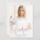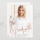 This trendy, elegant 2024 graduation announcement features two photos of the college or high school graduate. Casual, modern faux rose gold script appears on an overlay along with two photos of the graduate. You can adjust the wording on the back of the card to make this either a simple graduation announcement, or a grad party invitation. A stylish and simple graduation design for the class of 2024!