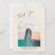This graduation thank you announcement features the text Thank You in a large trendy script typography above a photo of your graduate within an arch. Customise the text below with your graduate's name, school, and class of details. The back features a photo and room for you to include a thank you message!