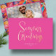 Make a bold and stylish statement this season with these Christmas cards featuring your favourite photo and a splash of vibrant holiday colour. This Christmas cards template showcases the phrase "Season's Greetings" in elegant script gold foil, set against a vibrant pink fuchsia background for a luxe, modern touch.