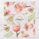 In gentle shabby chic colours of vintage pink and green and with a round pink and green badge with a monogram.