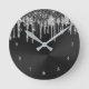 Trendy Silver Black Glitter Drips Graphic Round Clock