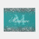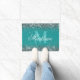 Trendy Silver Glitter Blue Green Monogram Doormat
