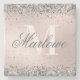 Trendy Silver Glitter Metallic Blush Pink Monogram Stone Coaster