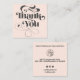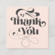 Trendy cool grey retro script order thank you square business card. the colours are editable. on pink background, add your logo and social media.