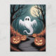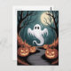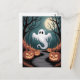 Trendy spooky Halloween Pumpkin Ghost Moon forest Postcard