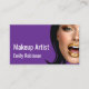 Trendy and stylish Makeup Artist business cards custom designed with a makeup model wearing glitzy gold glittery lipstick and modern text and layout you can personalize online.