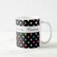 Colourful monogram coffee mugs with beautiful designer colour polka dots pattern all over the cup and monogram space you can personalise with your name drop or monogram initials. Lets you drink your favourite coffee or beverages in style and is designed as a left handed coffee mug or right handed.