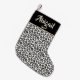 NewParkLane - Trendy Christmas Stockings for girls, with a sassy tan leopard pattern and a easy-to-use text template for your name, for a personalised design.