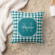 Trendy Teal and White Checked Monogrammed Name Cushion