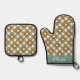 Trendy Teal Caramel Retro Groovy Flowers Seamless Oven Mitt & Pot Holder Set
