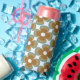 Trendy Teal Caramel Retro Groovy Flowers Seamless Seltzer Can Cooler