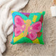 Trendy Teal, Green and Pink abstract butterfly Cushion