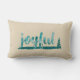 Trendy Teal Watercolor Joyful Brush Script Lumbar Cushion
