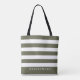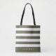 Trendy terrarium moss green and white stripe pattern, tote bag. Personalise with name and bridal party title.