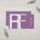 Monogrammed in huge lettering that fills the business card top to bottom and overlays the first name initial over the last name initial with a slight variance of colour, name and position title at a 90 degree angle on right edge of card - this has a textured overlay that will texture your (LAST NAME INITIAL ONLY ) monogram and background colour but leave the First Name initial , name and title clean - the back of the card leaves all of the text clean- CHANGE COLOR of the background by choosing Customise, use the edit drop down box for background colour - the one I have chosen here is a medium plum - the textured appearance will remain. (Do Not forget to change the background colour to match on the back of the card) NOTE: THIS card is NOT truly Textured, it is an artistically designed image to make it appear textured.