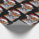 Trendy Tiger with Santa Hat Christmas Black Wrapping Paper