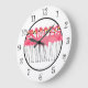 Purchased this online and it got delivered quickly. It was a present for my Dads 70th birthday. He loves clocks so decided to get him one with something written on it. Battery went in and it started working straight away. Dads had no issues with it. Printing was just how it came up online.