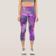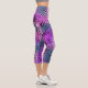 Trendy Tropical Palm Leaves Pattern Purple Teal Capri Leggings