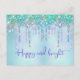 Trendy Turquoise Glitter Drips Graphic Christmas Postcard