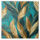 Trendy Turquoise Gold Boho Leaves Collection Ceramic Tile