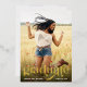 This graduation card features trendy typography and a large photo. On the front, "Graduate" is written in real gold foil typography at the bottom. Below, you can add the graduate's name and graduation year. The back of the graduation card includes a template to add graduation party details.
