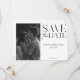 Modern wedding Save the Date template postcard with trendy overlay typography text . Template feature one vertical photo. The photo and text can easily be personalized for a unique one of a kind design for your special day.